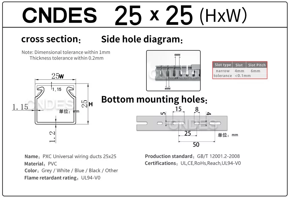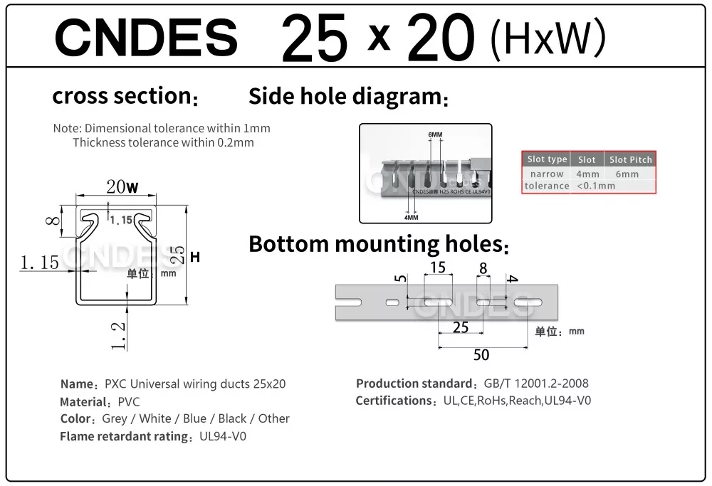 ہمارے آزادانہ طور پر تیار کردہ اعلیٰ درستگی کے اسٹیمپنگ کے آلات کے ذریعے، ایک منفرد الگ الگ خودکار کاٹنے کے عمل کے ساتھ مل کر، CNDES لچکدار طریقے سے متعدد تصریحات میں مصنوعات تیار کر سکتا ہے، بشمول ہائی پرفارمنس 25 ملی میٹر اونچائی PVC سلاٹڈ کنٹرول پینل ڈکٹ، کنٹرول کیبنٹ اور برقی نظام میں صارفین کی متنوع ضروریات کو پورا کرتا ہے۔