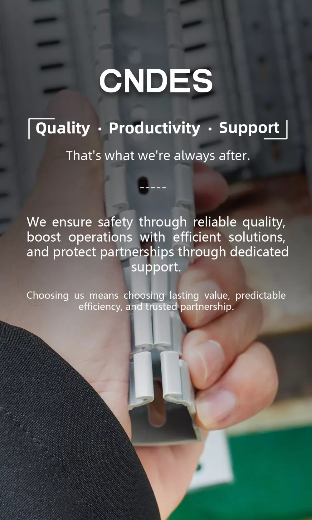 اگر آپ طویل مدتی شراکت کے لیے ایک قابل اعتماد PVC کیبل ٹرے بنانے والے کو تلاش کر رہے ہیں، جو مستحکم سپلائی، قابل اعتماد معیار، اور بالغ ٹیکنالوجی پیش کرتا ہے، تو CNDES آپ کا بہترین انتخاب ہے۔