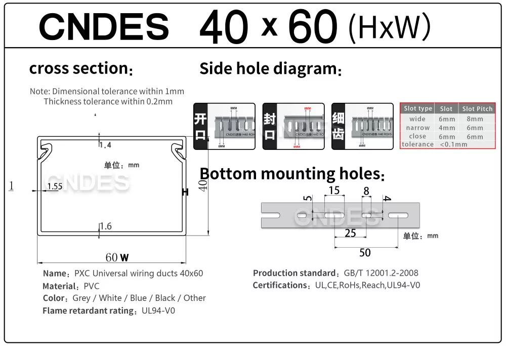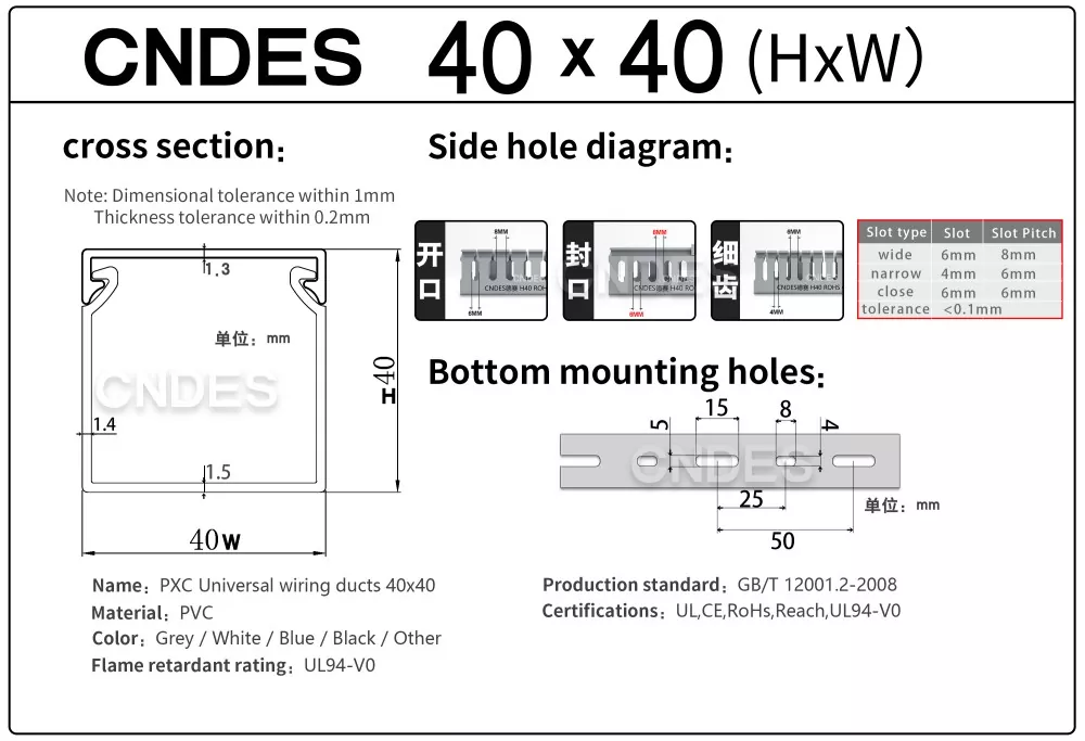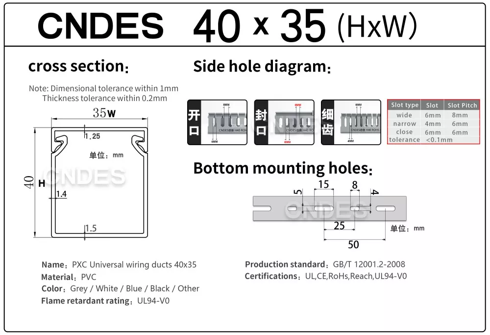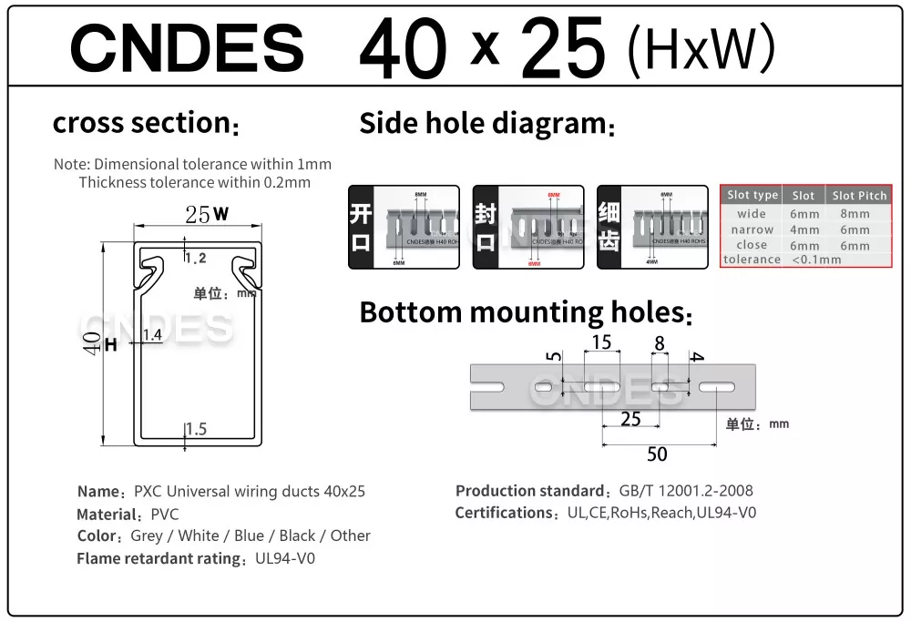 CNDES Slotted PVC وائرنگ ریس وے ڈکٹ مینوفیکچررز اور سپلائرز میں سرفہرست ہے۔ یہاں ہم اپنی 40mm-اونچائی والی کیبل ٹرے متعارف کرائیں گے، بشمول 40*25، 40*30، 40*35، 40*40، اور 40*60۔