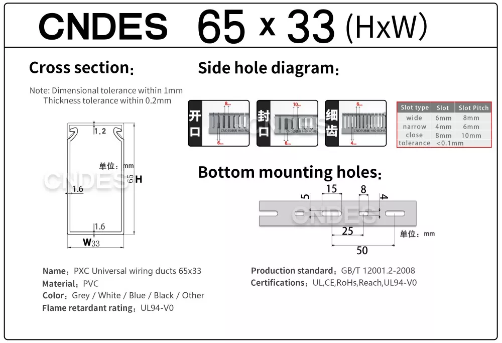 CNDES 24 سال کے تجربے کے ساتھ PVC کیبل وائرنگ ڈکٹ سورس فیکٹری ہے۔ حسب ضرورت 65 ملی میٹر اونچائی سلاٹڈ پی وی سی انڈسٹریل وائرنگ ڈکٹ اعلی کثافت والے ماحول جیسے صنعتی کنٹرول پینلز، آٹومیشن آلات، اور مشینری کی تنصیبات میں وائرنگ کو منظم کرنے اور ان کی حفاظت کے لیے ایک مثالی حل ہے۔ 65mm کی اونچائی کے ساتھ، یہ بڑے کیبل بنڈلوں کو ایڈجسٹ کرنے کے لیے کافی جگہ فراہم کرتا ہے جبکہ ماحولیاتی عوامل جیسے دھول، نمی، اور مکینیکل نقصان سے بہترین تحفظ کو یقینی بناتا ہے۔