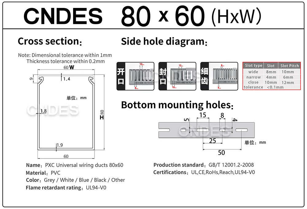 یہاں، ہم آپ کو 80*60mm، 80*60 کی اپنی وضاحتیں متعارف کرائیں گے یہ 80mm کی اونچائی اور 60mm وائرنگ ڈکٹ کی چوڑائی کی نمائندگی کرتا ہے۔