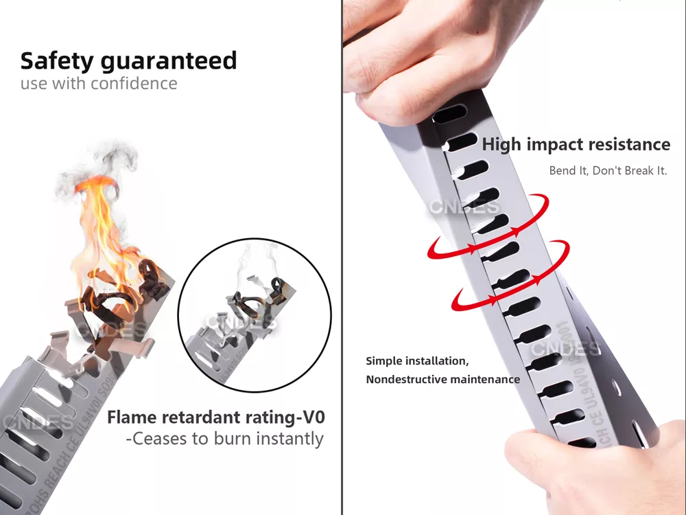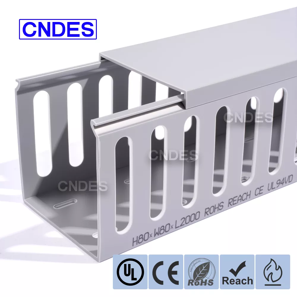 2. صنعتی-گریڈ کی طاقت، محفوظ اور قابل اعتماد: کوالٹی 80×80 سلاٹڈ PVC سوئچ بورڈ وائرنگ ڈکٹ گاڑھے شعلہ retardant PVC مواد (UL94-V0) سے بنی ہے، جو اسے مضبوط، پائیدار، اثر مزاحم، اور بہترین بوجھ برداشت کرنے کی صلاحیت کے ساتھ بناتی ہے۔ یہ کمپن کے ماحول میں بھی کیبلز کے لیے دیرپا تحفظ فراہم کرتا ہے۔